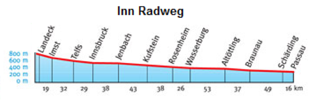 RAKOUSKO: Vjíždíme do Rakouska, projíždíme kolem městečka Pfunds a zastavujeme u prvního obchodu v 11.30 až ve městě Tösens. Nakupujeme snídani i oběd dohromady a jíme konečně normální chleba s parmskou šunkou , jorurt a broskve. Po pár kilometrech v městě Ried navštěvujeme koupaliště, ukecáváme cenu na 2 hodinky za 1E za os. a platíme 1,20E (jediné drobné co máme). Voda je trochu studenější ale příjemné vykoupání nikdy neuškodí. Nafukujeme mojí karimatku a ve vodě nalézáme dírku. Lepíme, konečně se po dvou dnech spaní na zemi vyspím v měkkém. Koupeme se a relaxujeme. Po hodince vyrážíme dál, zastavujeme až ve městě Landeck na „oběd“ kde si dáváme trochu sýra s rohlíkem a ktomu točené pivko Löwembraun – výborné. V protějším obchodě kupujeme i mapu Inn – stezky a pokračujeme přes Imst do Telfsu kde plánujeme nakoupit na večeři. Posledních 10km mažeme 25km/h abychom do 19.00 stihli otevřený obchod ale nedaří se. V Telfsu musíme tedy navštívit pana Donalda a dáváme si každý 4 chesse burgery s hranolkami kolu a zmrzlinku. Po vydatné večeři předpokládáme brzké nalezení místa na spaní a ranní pokračování směrem na Innsbruck. Bohužel zjišťujeme, že se v rakousku najít spaní u cyklostezky nedá tak snadno jako ve Švýcarsku. Nalézáme místo u cesty, ale je trochu frekventované a úplně nám nevyhovuje, proto pokračujeme ještě dalších 30km až do Innsbrucku. Je už tam, poprvé jedeme s baterkami. Kotvíme u řeky na pěkných širokých lavicích. Koupeme se v Innu ale je to trochu nebezpečné je tam proud a tekuté písky. Po minutě stání ve vodě se boříme po lýtka do písku. Dojíždíme do blízké hospody pro lahvové pivo a večer trávíme s Martinem – Švýcarem který jede poprvé na kole do práce do Moldávie 2500km. Jdeme spát je 23.00 a docela teplo 21oC.