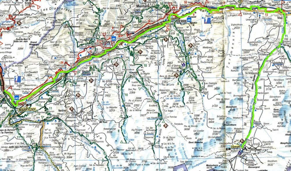Celkem nastoupáno 8371m – Dnes 1362m z toho 997 z Vispu do Zermatu