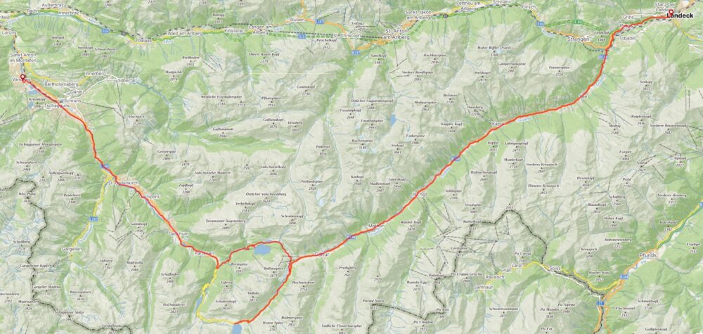 Pršelo asi celou noc. Ráno v osm mám chvilku štěstí na zabalení, ale hned zase začíná. Včera jsem se ještě rozhodl že si opravím tachometr, do kterého zatéká a zamlžuje se. Podařilo se mi vyndat přední sklíčko, kudy asi vnikala voda. Ráno jdu vedle do DM drogérie pro vteřinové lepidlo a balíček prezervativů. Sklíčko lepím, a ještě pro jistotu dávám tachometr do kondomu, aby na něj přímo nepršelo. Snídám ovesnou kaši a vlastní kávu Drip It. Před desátou navlékám nepromokavé ponožky a bundu a vyrážím na 48 km dlouhé stoupání. Prší, ale jede se pěkně. Stoupání je mírné, jedu nejprve podél řeky Sanna a později odbočuju do údolí Paznaun podél řeky Trisanna. Ani se nenaději a mám za sebou 37 km s jednou malou přestávkou na půl fit tyčinky. Jedu přes See, Ischgl, Mathon a stavím až v Galtür v pekárně na gulášovou polévku k pozdnímu objedu.